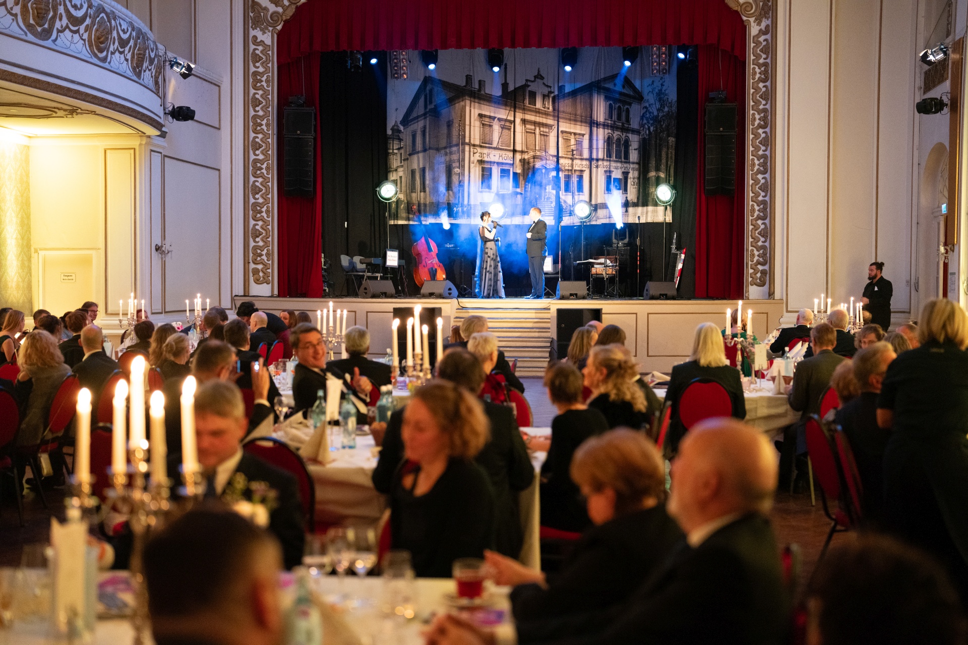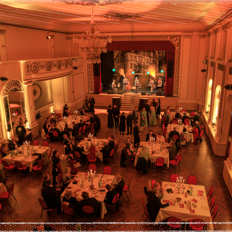 Im Ballsaal stehen 160 Sitzplätze an 16 festlich gedeckten Tischen mit jeweils 10 Plätzen zur Verfügung; die Empore bietet zusätzlich 40 Sitzplätze. Reservieren Sie sich jetzt Ihre Plätze für einen Abend, der Musik, Stil und Lebensfreude zelebriert.